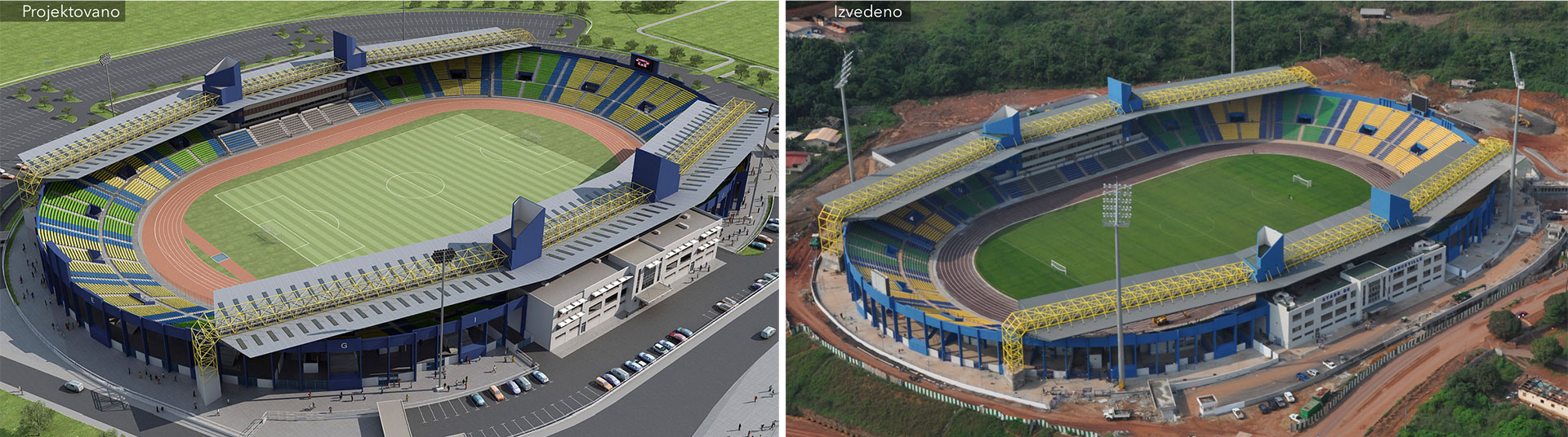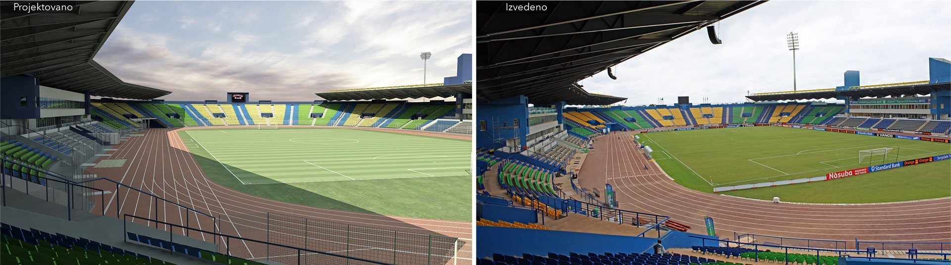 Detailed design and construction supervision of Football stadium for competitions for Africa Cup of Nations 2012. Partial execution of the works, stadium signage. Project Management Cabinet D'Architecture 2G